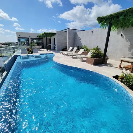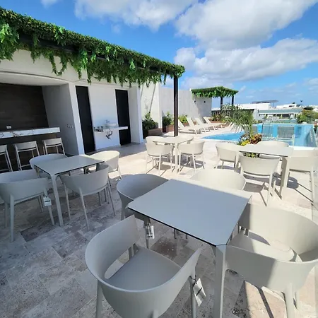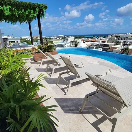 Condo En El Corazon De Playa Del Carmen med 1 sovrum, som ligger i distriktet Centro mindre än 5 minuters promenad från Playacar, har en takpool och en terrass. På gångavstånd från den 48 m² stora lägenheten hittar du Parque, Portal Maya.
